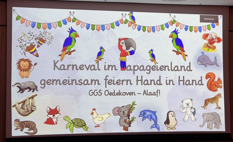 Zum Abschluss forderte die erste Stufe das Publikum mit dem Lied „Stonn op un danz“ zum Mitmachen und Tanzen auf. sorgte für einen schönen Abschluss. So bleiben zwei bunte, fröhliche und unvergessliche Karnevalstage in Erinnerung, an denen die gesamte Schulgemeinschaft ganz im Sinne des Mottos „Gemeinsam feiern wir Hand in Hand“ zusammen gefeiert hat.